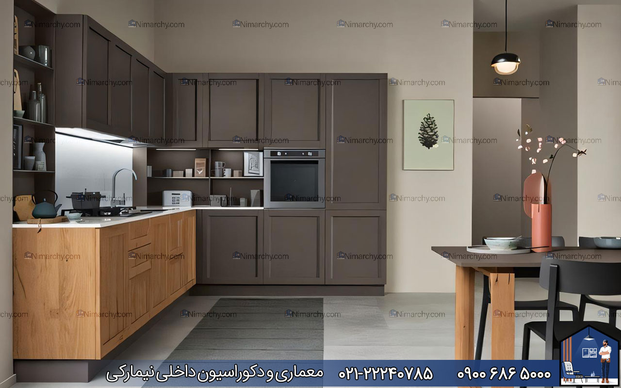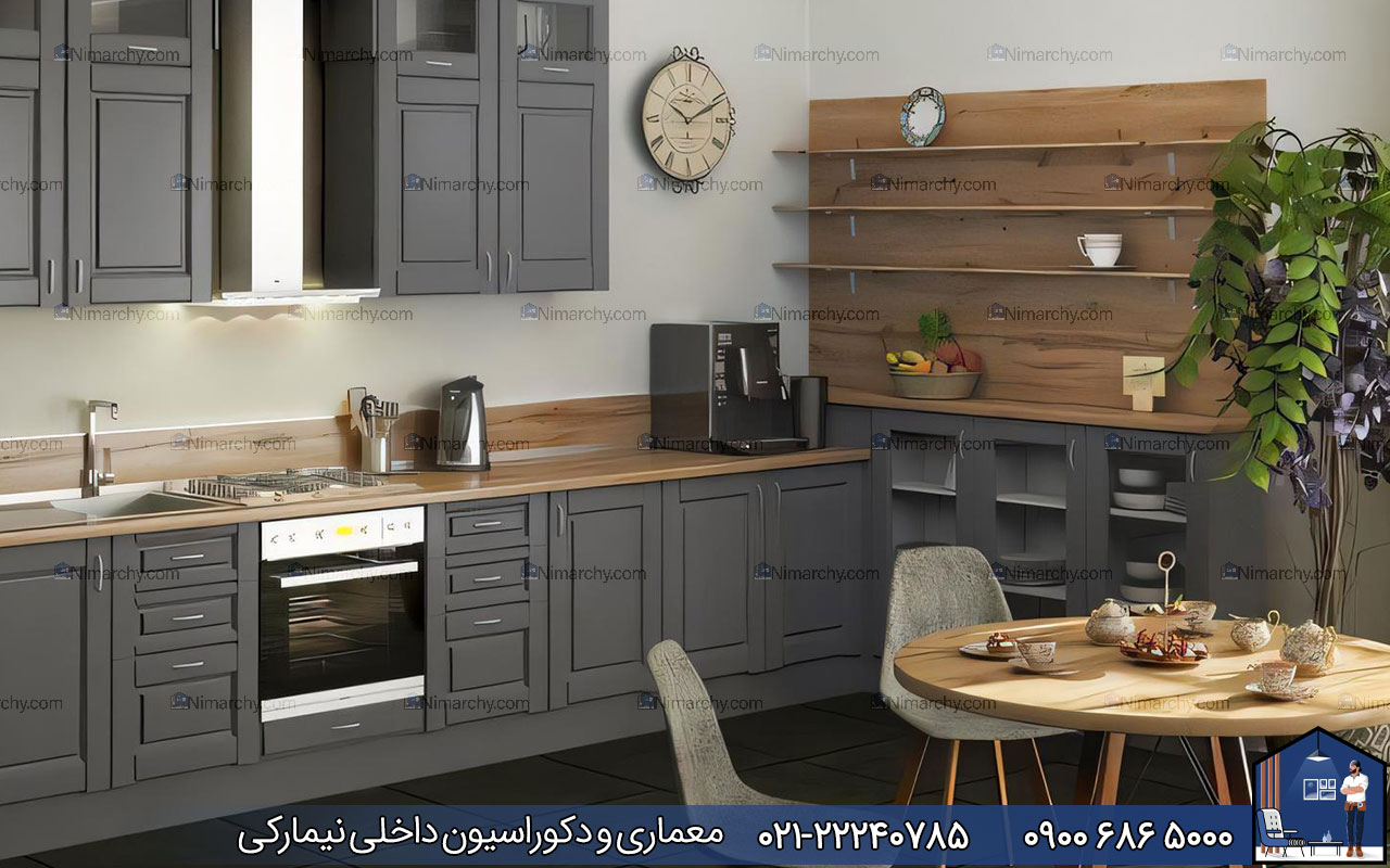 به‌طور کل کابینت نئوکلاسیک طوسی و چوب از نظر سبک و ترکیب رنگ جزء انتخاب‌هایی است که خلاقیت در طراحی آن پایانی ندارد. بنابراین در این مورد شما به یک طراح حرفه‌ای نیاز دارید که با توجه به فضای آشپزخانه یک طراحی بهینه و در عین‌حال منحصربه‌فرد را برای شما انجام دهد.